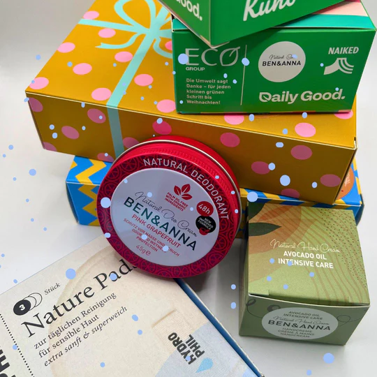 Der nachhaltige Adventskalender von Ben & Anna bringt mit 24 hochwertigen Produkten in Originalgröße im Wert von über 100 € jede Menge Abwechslung in die Vorweihnachtszeit. Hinter jedem Türchen verstecken sich umweltfreundliche Überraschungen aus der Eco Group – von Marken wie Hydrophil, Naiked, Dental Delight, Kuno und natürlich Ben & Anna selber. Ob Zahnpflege, natürliche Reinigung oder pflegende Beauty-Produkte: Dieser Kalender zeigt, wie vielseitig nachhaltige Alternativen im Alltag sein können.